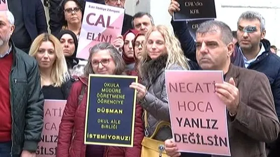 Bu yüzden Necati Hocamızın yanındayız. Okulumuzun adını karalamak isteyenlerin karşısındayız.