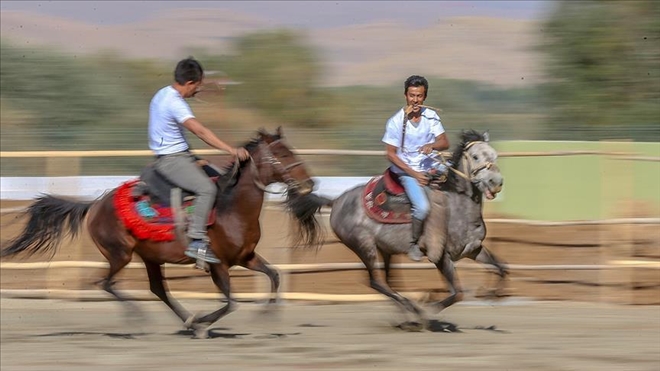 Programda parkın binicilik bölümünde Erciş ilçesinin Ulupamir Mahallesi´nde yaşayan Kırgız Türkleri, "Buzkaşı" oynadı.
