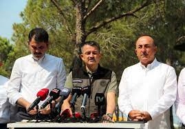 Tarım ve Orman Bakanı Bekir Pakdemirli, Dışişleri Bakanı Mevlüt Çavuşoğlu ve Çevre, Ulaştırma ve Altyapı Bakanı Adil Karaismailoğlu ve Şehircilik Bakanı Murat Kurum ile Antalya'nın Manavgat ilçesindeki Orman Yangını Yönetim Merkezi'nde gazetecileri yangınlarla ilgili bilgilendirdi.