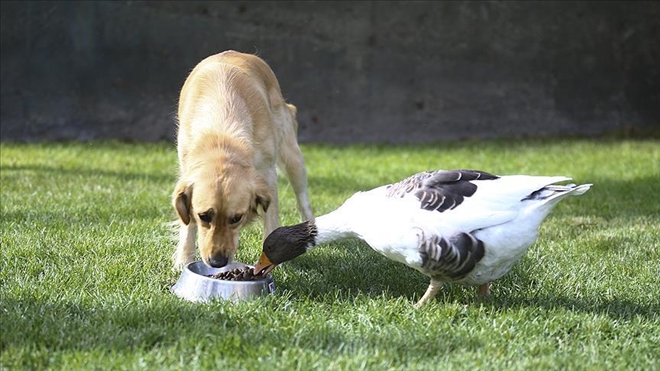 Ankara´nın Sincan ilçesinde bir ailenin küçük yaşlardan beri yan yana büyüttüğü golden retriever cinsi köpek ile kaz, günlerini birlikte geçiriyor. Sahipleri eşliğinde sokaklarda birlikte gezen, sık sık birbirlerine sevgi gösterisinde bulunan ayrılmaz ikilinin yedikleri içtikleri ayrı gitmiyor. Dost ve Zincir, aynı kaptan köpek maması yiyor.