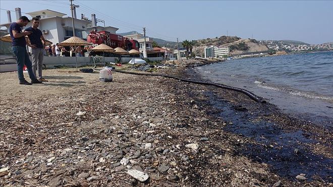 Foça´da Gencelli sahilinde 31 Ağustos´ta tespit edilen akaryakıtın temizlenmesi için çalışma başlatılmıştı.