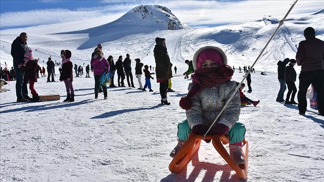 Kar kalınlığının yer yer 2 metreyi bulduğu Hakkari´de, 2 bin 800 rakımdaki kayak merkezi, yarıyıl ve hafta sonu tatilini fırsat bilen vatandaşlarla doldu.