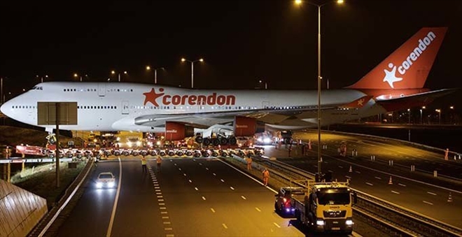 Türk iş insanı Atilay Uslu´nun sahibi olduğu Hollanda ve Benelüks ülkelerindeki en büyük otelin bahçesine konulacak Boeing 747 tipi uçak otoyoldan geçti.