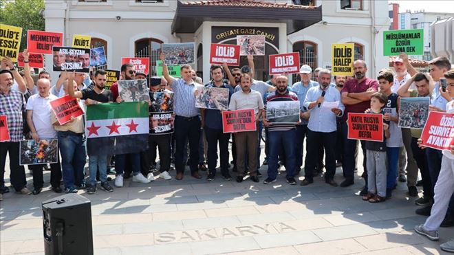 Suriye´nin kuzeybatısındaki İdlib ilinde Rus savaş uçaklarının çok sayıda sivil yerleşim yerini ve muhaliflerin cephe hatlarını vurması Sakarya´da protesto edildi.