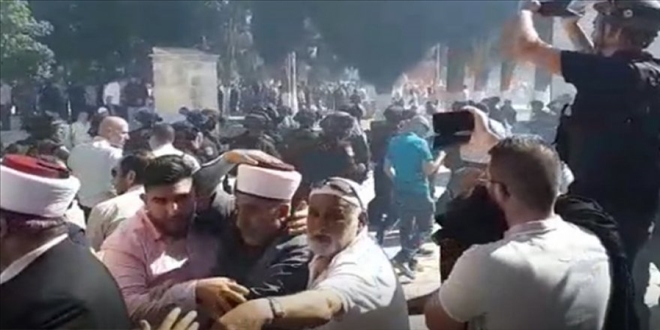 Kudüs İslami Vakıflar yetkilileri, AA muhabirine yaptığı açıklamada, İsrail polisinin Filistinlilere göz yaşartıcı gaz, ses bombaları ve plastik mermiyle müdahalede bulunduğunu ve aralarında Kudüs Yüksek İslami Vakıflar Konseyi Başkanı Şeyh Abdülazim Selheb´in de bulunduğu bazı Filistinlilerin yaralandığını söyledi.