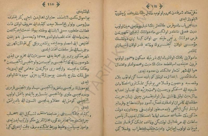 âzâd êtdiler dediler ki olmasun ki şehre ve şenliğe ve êle ve vîlâyete giresin senün yêrün tağ ve mîşelerdür her gün bir yiğit beynisine bir koyun beynisini katup vêrürlerdi her ayda otuz yiğit anlarûn 'inâyetiyle halâs bulup cân kurtıldı çün bir êki yüz kadar er derildi bir gizlü yerde cem' êdüp bunlara birkaç keçi ve koyun vêrüp tağa salıverürdi belürsiz olup tağılurlardı Kürdün aslı andandur ki şimdi dahı şehre ve âbâdânlığa çendân gelmezler birer kara libâsdan evleri var ne Tanrı korkusın bilürler ve ne (…)