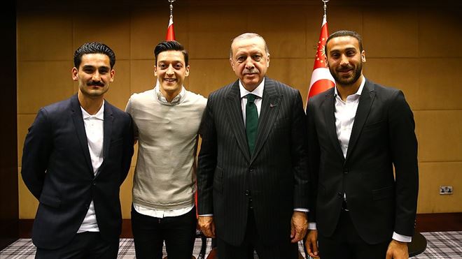 İngiltere Premier Lig´de oynayan Türk futbolcular Cenk Tosun, Mesut Özil ve İlkay Gündoğan, mayıs ayında Cumhurbaşkanı Recep Tayyip Erdoğan ile Londra´da buluşarak fotoğraf çektirmiş ve formalarını hediye etmişlerdi.
