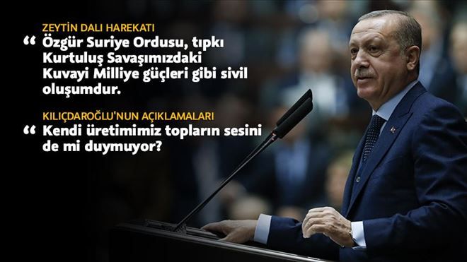 YPG´nin, PKK´nın Suriye kolu olduğuna işaret eden Erdoğan, Kılıçdaroğlu´nun, şu anda Zeytin Dalı Harekatı´nı yürüten askere kurşun sıkan, sınır ötesinden yaptığı saldırılarla vatandaşların canına, malına, ibadethanesine kasteden terör örgütünü savunduğunu bildirdi.