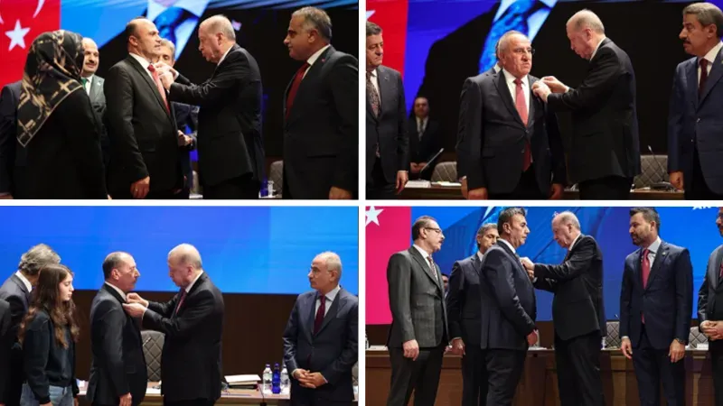 Cumhurbaşkanı Recep Tayyip Erdoğan, AKP'ye katılan belediye başkanlarına rozetlerini taktı.