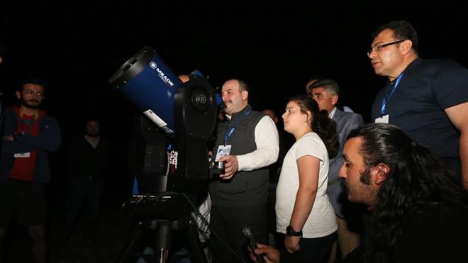 Bakan Varank, kendisine eşlik eden Antalya Valisi Münir Karaloğlu, TÜBİTAK Başkanı Prof. Dr. Hasan Mandal ve ziyaretçilerle birlikte teleskobu kullanarak gezegenleri inceledi.