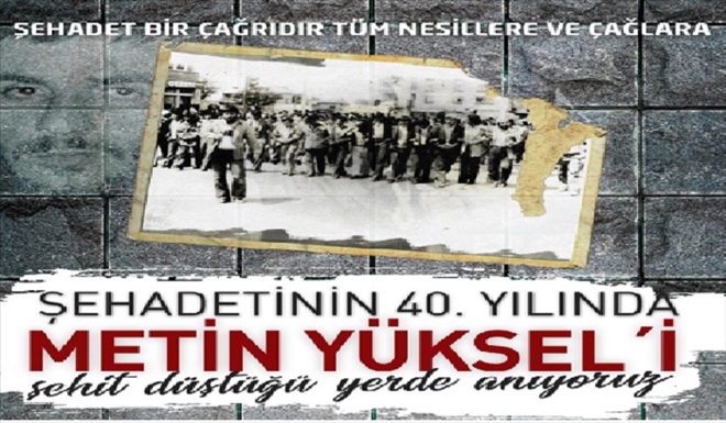 Bu yıl Metin Yüksel´in şehadetinin 40.yılıdır. Bizler aşağıda imzaları bulunan kurumlar olarak oluşturduğumuz Şehit Metin Yüksel Platformu, 23 Şubat 2019 Cumartesi günü öğle namazına müteakip, şehit edildiği yerden başlayan bir anma programı geçekleştireceğiz. Programın ayrıntıları aşağıda belirtilmiştir. Pek çok gencimizin karanlık odaklarca katledildiği dönemlerin bir daha yaşanmaması için bu cinayetleri unutturmamak gibi bir sorumluluğumuz vardır. Bu bilinçle gereken ilgiyi göstereceğinizi umut ediyor, katılımlarınızı bekliyoruz.