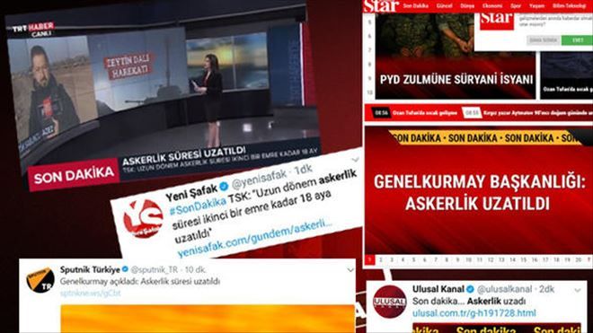´´Milli Savunma Bakanlığı ile Genelkurmay Başkanlığı olağanüstü hal teskere planlama toplantısı sonucu nihai kararı hafta başı resmi gazete yayını ile duyurulacaktır. Hali hazırda silah altında bulunan ER/ERBAŞ zorunlu askerlik süreleri yenilenmiş olup, bu kararın tüm silahlı kuvvetler ile milletimize hayırlı olmasını temenni ederiz.