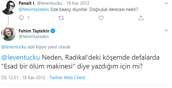 Bu süreç içerisinde Türkiye'de medyatik isimler ve bazı akademisyenler, Beşar Esed'in bir 'diktatör' olduğunu ve bu diktatörlüğün sona ermesi gerektiğini savunup göstericileri desteklerken, bu tutum zamanla yerini 'Esed fanatizmine' varan boyutlarda bir rejim savunuculuğuna bıraktı.