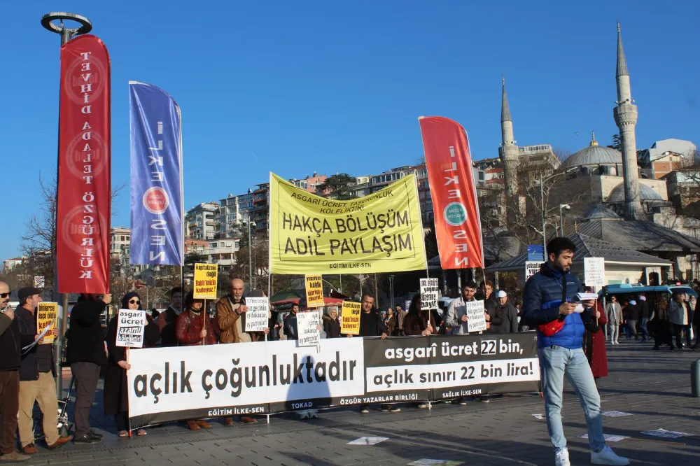 Eğitim İlke-Sen, Sağlık İlke-Sen, TOKAD ve Özgür Yazarlar Birliği, 01 Ocak 2025 çarşamba günü Üsküdar sahilde bir eylemle “kölelik ücreti” olarak değerlendirdikleri asgari ücret uygulamasını protesto ederek “hakça bölüşüm, adil paylaşım” çağrısında bulundu ve ekonomi politikalarını protesto etti.