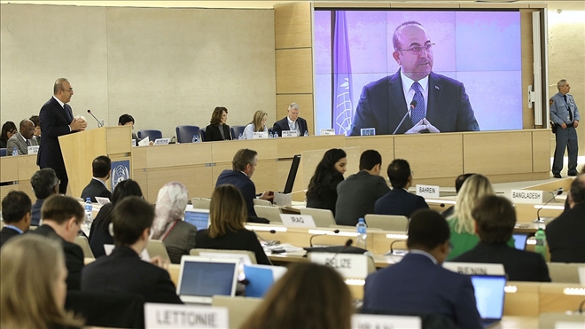 Dışişleri Bakanı Mevlüt Çavuşoğlu, İsviçre´deki Birleşmiş Milletler (BM) Cenevre Ofisi´nde başlayan İnsan Hakları Konseyinin 40´ıncı oturumunun açılışındaki "yüksek seviyeli" bölümde Konseye hitap etti.