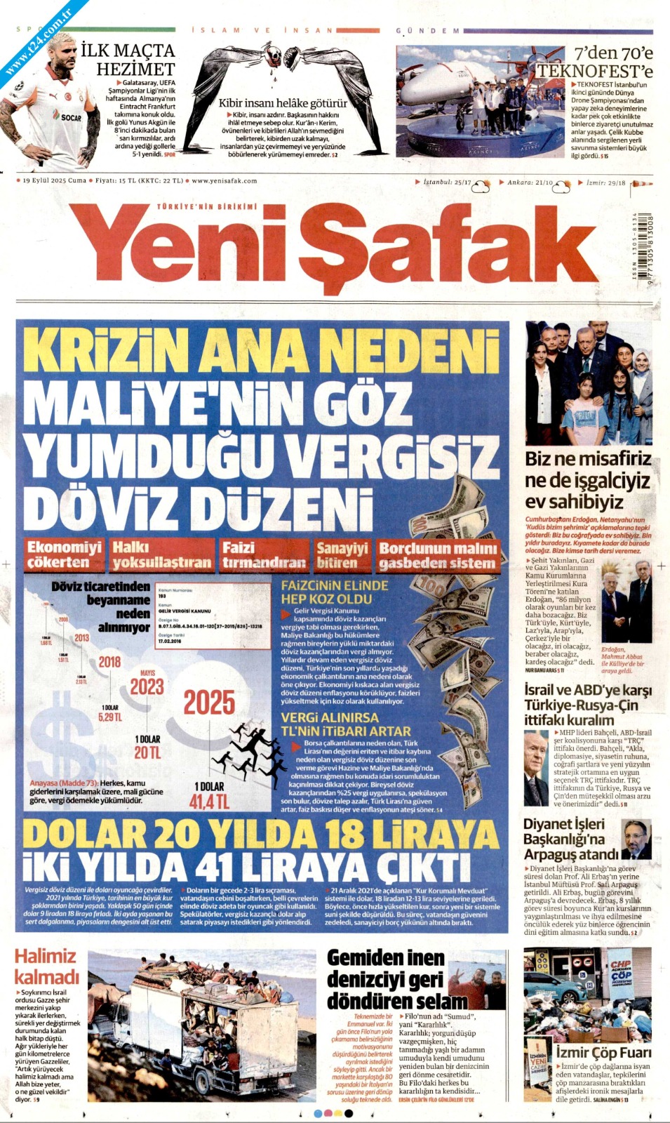 Yeni Şafak'ın manşetten verdiği "Krizin ana nedeni Maliye'nin göz yumduğu vergisiz döviz düzeni" haberinde, "Gelir Vergisi Kanunu 75, 80, 82. maddeleri kapsamında döviz kazançlarının vergiye tabi olması gerekirken, Maliye Bakanlığı bu hükümlere rağmen bireylerin yüklü miktardaki döviz kazançlarından vergi almıyor. Yıllardır süren vergisiz döviz düzeni, Türkiye’nin son yıllarda yaşadığı ekonomik çalkantıların ana nedeni olarak öne çıkıyor. Ekonomiyi kıskaca alan vergisiz döviz düzeni enflasyonu körüklüyor, faizleri yükseltmek için koz olarak kullanılıyor" denilmişti.